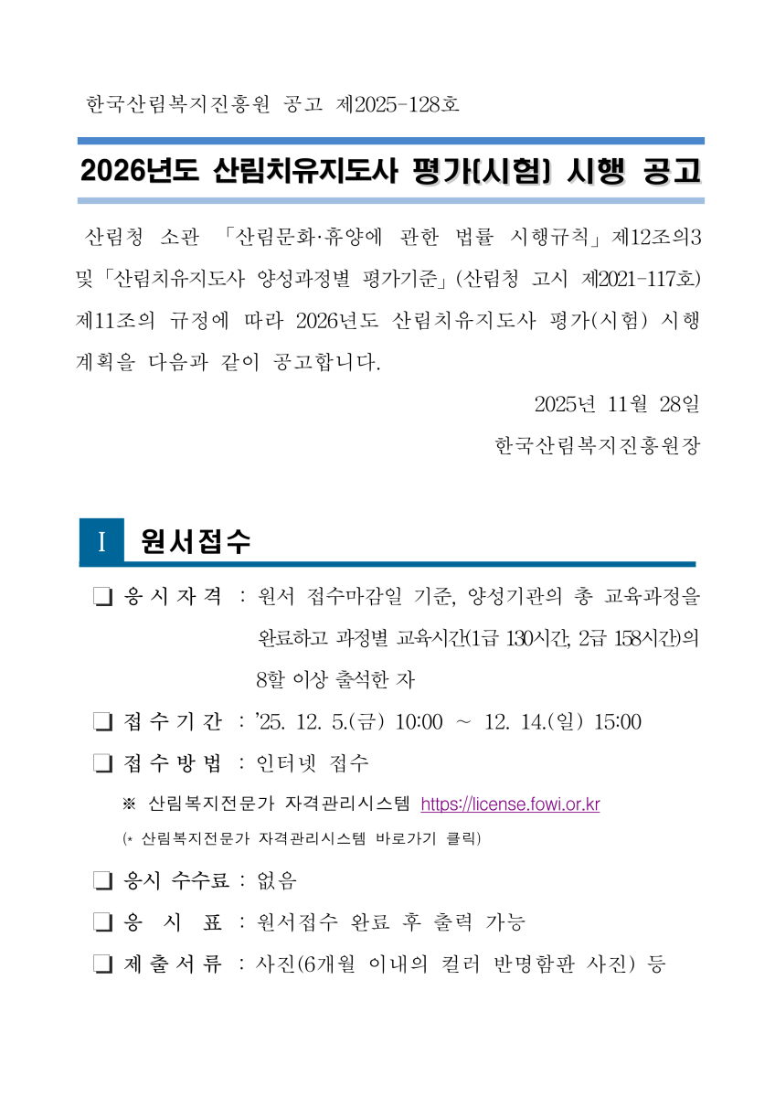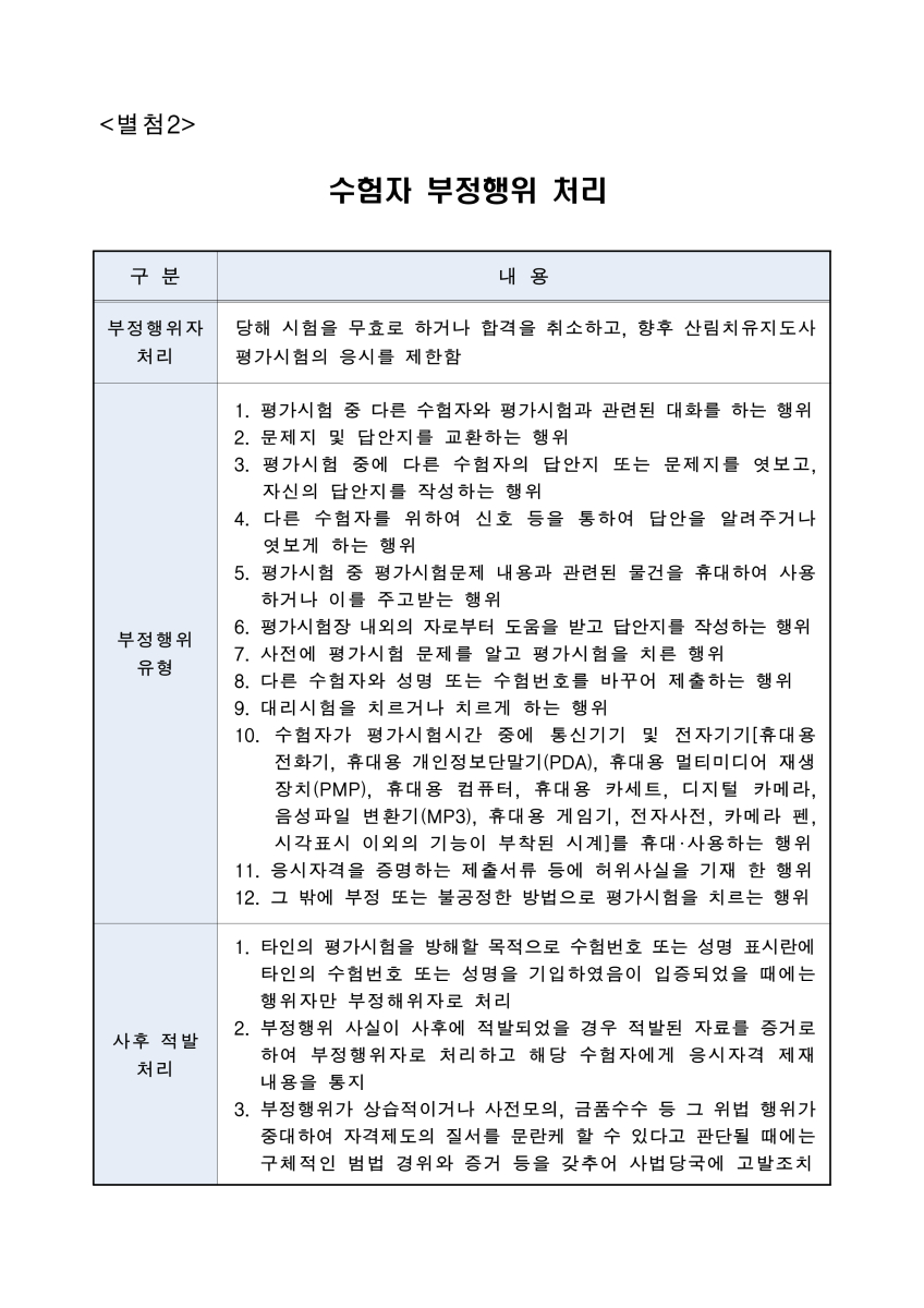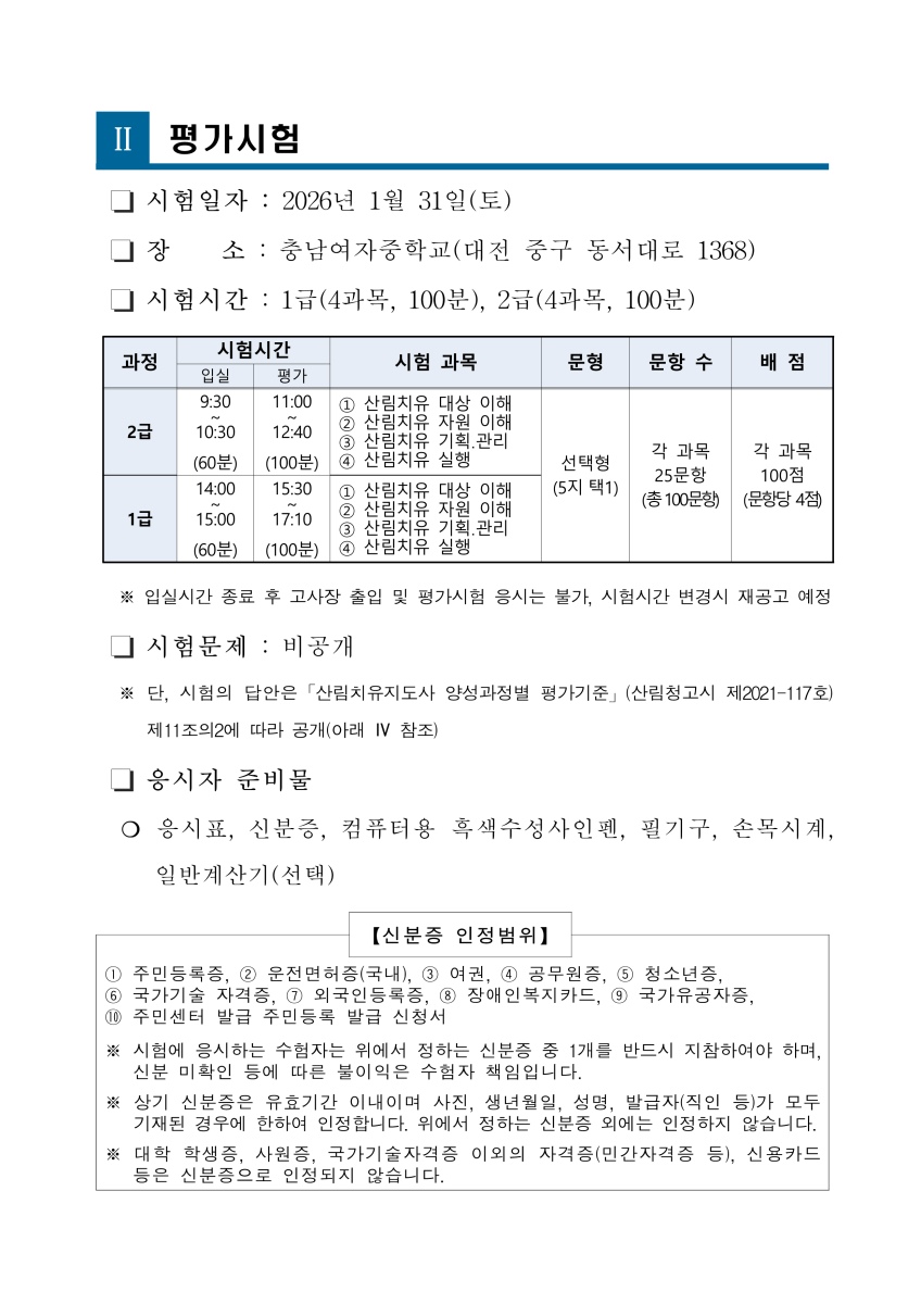 - 산림치유지도사 평가시험